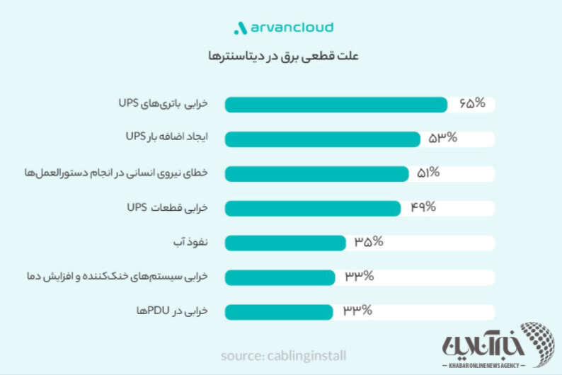 البته این مسئله فقط مختص ایران نیست و همانطور که در تصویر بالا مشخص است، خسارتهای ناشی از باطریهای ups مهمترین علت خاموشی دیتاسنترها هستند. اما مسئله زمانی دربارهی ایران خطرناکتر است که همانطور که در بالاتر گفته شد، قطعی برق متعدد مهمترین علت آسیب به باطریهای ups و زیرساختهای مراکز داده است. نکتهی نگرانکننده آنجاست که بدانیم دیتاسنترهای ایرانی بدون آنکه ظرفیت فوقالعادهای برای روشن ماندنشان از سوی شرکت برق در نظر گرفته شود، مانند برق خانگی و حتی بیشتر از آن تجربهی قطعی برق را تجربه میکنند.