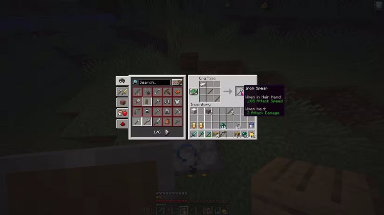 وقتی همه چیزهایی که نیاز دارید را به دست آوردید، میز ساخت و ساز (Crafting Table) خود را باز کنید و چوب‌دستی‌ها و ماده اولیه اصلی را مانند چیزی که در تصویر بالا می‌بینید، قرار دهید. در حال حاضر، هفت نوع نیزه وجود دارد که می‌توانید بسازید. هر کدام به دو چوب‌دستی و یک تکه از ماده اولیه‌ای که از آن ساخته شده، نیاز دارد. این هم لیست کامل آن‌ها: