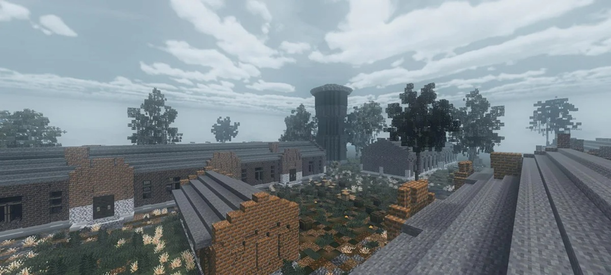 یکی از موارد مهمی که در این سازه میبینید، تم خاکستری و تاریک این سازه است که به فضاسازی این دنیا حسابی کمک کردهاست. در واقع سازنده سعی کرده تا با شیدرهای ماینکرفت، به دنیای خود تمی تاریک و سرد بدهد تا بتواند فضای غمانگیز و ناراحتکننده آن دوران را به خوبی به تصویر بکشد.