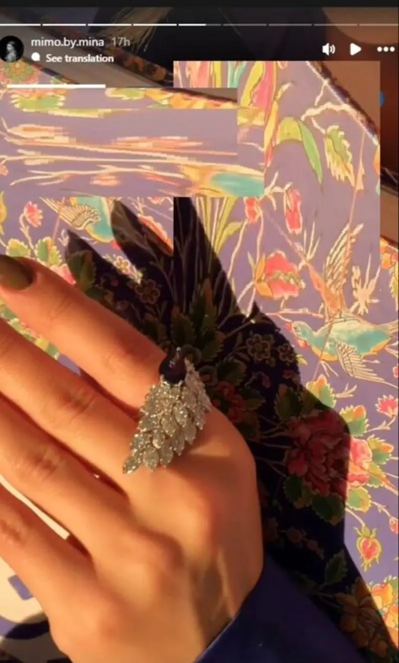مینا مختاری نه تنها در طراحی، بلکه در انتخاب جواهرات نیز دقت و سلیقهای بینظیر دارد. از جمله اکسسوریهای جذاب او میتوان به ست گوشواره و انگشتر زینتی با سنگ زمرّد اشاره کرد که در مناسبتهای خاص به چشم میآیند. همچنین انگشتر طاووسیاش از دیگر نمونههای جواهرات لوکس اوست که زیبایی منحصربهفردی دارد.