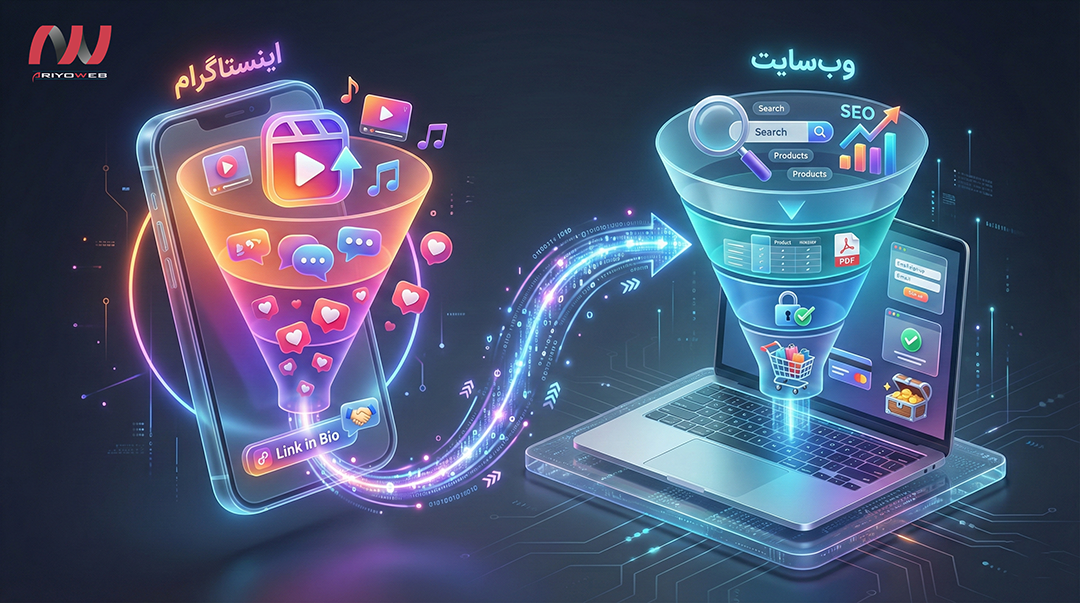 قیف مقایسه ای فروش در وب سایت و اینستاگرام-آریووب